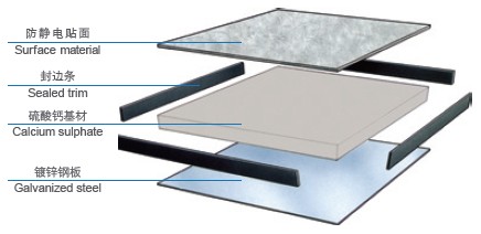 功能簡介:其材用高密度硫酸鈣基材,表面采用HPL/PVC貼面,底面鍍鋅鋼板,四周黑色PVC封邊。